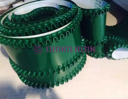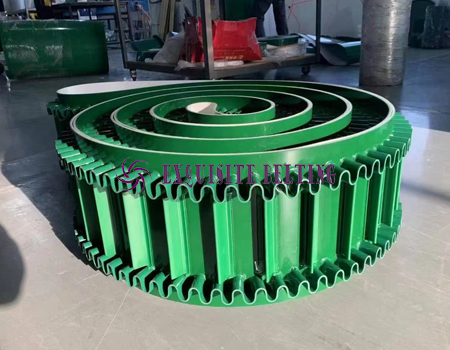 Beijing EXQUISITE International Development Co., Ltd. Skirt baffle conveyor belt, hot melt processing, strong and firm, suitable for conveying bulk material, large inclination angle transportation.